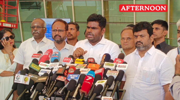 Speaking to reporters at the Coimbatore International Airport after arriving from Chennai, Annamalai said the DMK government had indulged in several corrupt practices, particularly in the local administration sector. He alleged that corruption charges have been raised against Local Administration Minister K.N. Nehru and Food and Civil Supplies Minister R. Sakkarapani.