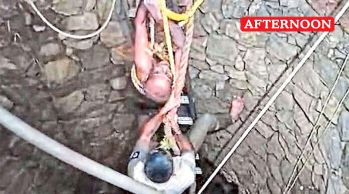 Fire and rescue personnel were immediately alerted. They rushed to the spot, descended into the well, secured him with ropes and brought him safely to the surface.