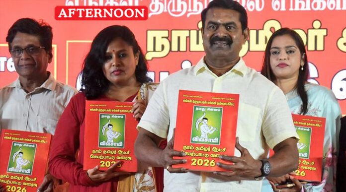 Naam Tamilar Katchi chief coordinator Seeman on Wednesday released the party’s 462-page election manifesto, outlining key proposals ahead of the Tamil Nadu Assembly