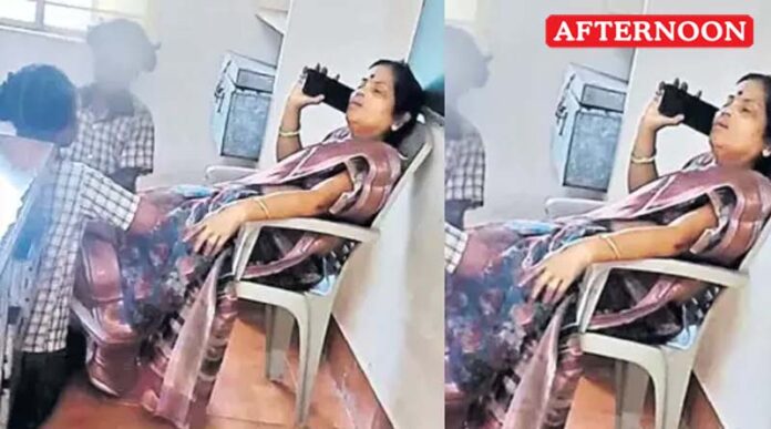 In the viral video, the teacher, identified as Sujatha, is seen reclining in her chair and speaking on her mobile phone while two young students sit on the floor, holding her feet. The shocking visuals drew severe criticism from parents and the public, demanding action against the teacher.