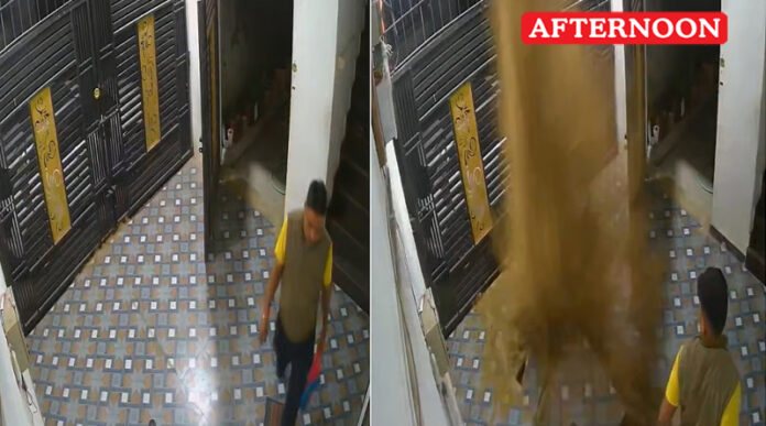 According to reports, the incident occurred when water initially began seeping slowly from the floor inside the house. Within moments, the pressure intensified and water started gushing out violently after the borewell pipe burst, flooding the premises.