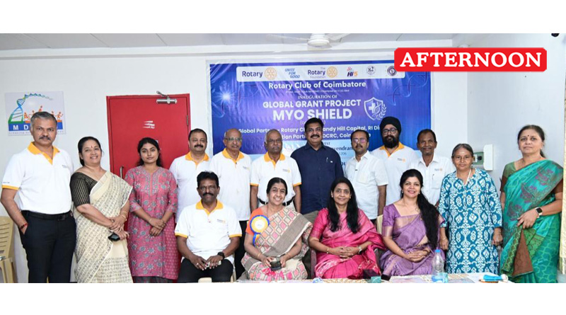 The Rotary Club of Coimbatore, led by President Dr. Chitra Manohar, has launched its Global Grant Project “MYO SHIELD,” an initiative aimed at preventing muscle degeneration, at the MDCRC campus of Royal Care Hospital in Neelambur.