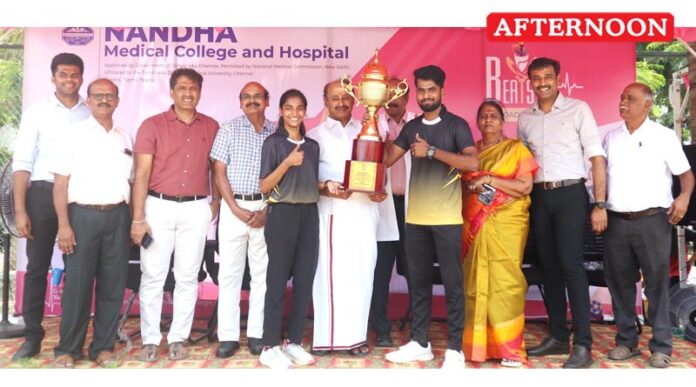 The 2nd Annual Sports Meet was organized by Nandha Medical College and Hospital. Mr. V. Shanmugan, Chairman of the Trust, distributed prizes to the winners.