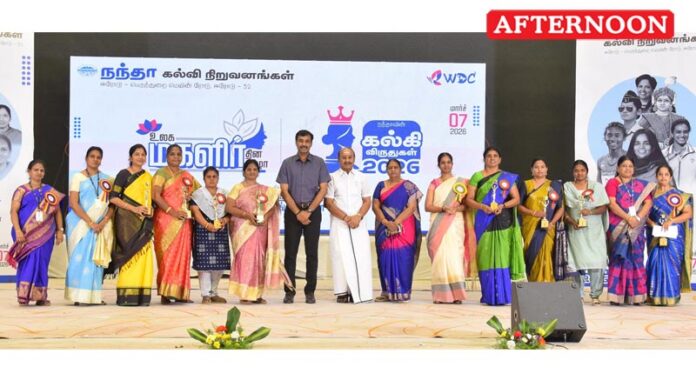 At the 17th “World Women’s Day” celebration organized by Nandha Educational Institutions in Erode, awards were given under the title “Nandha’s Kalki 2026” to many women who excelled in social service.