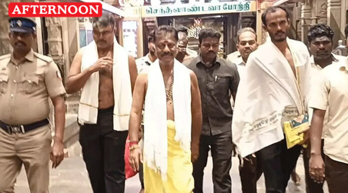 On Wednesday morning, O. Panneerselvam once again visited the Tiruchendur temple and had darshan for the second consecutive day. His visit drew the attention of devotees and political supporters alike.
