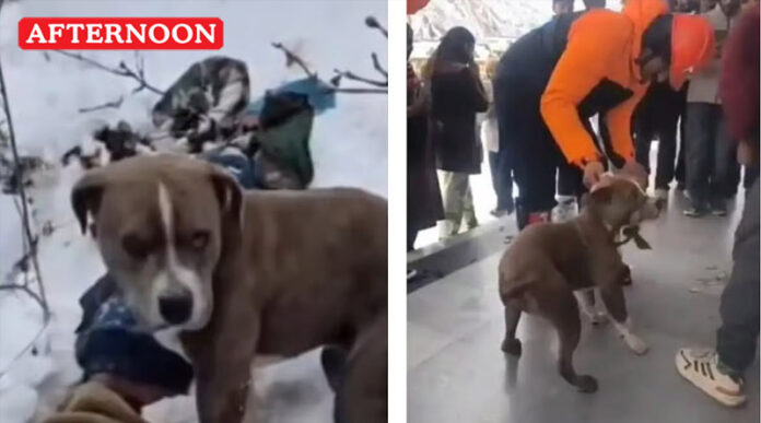 Rescuers were deeply moved to find the pet dog standing beside the bodies, refusing to leave them despite extreme cold and snowfall.