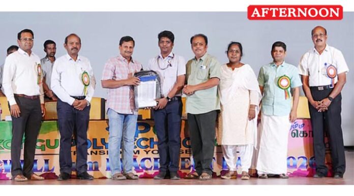 A cash prize was also presented to Sathishkumar, a third-year student, for securing the Overall Champion title in state-level sports competitions.