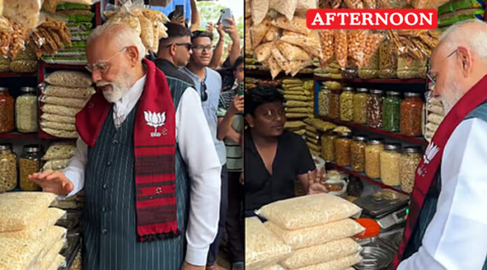 Prime Minister Narendra Modi took a brief break from his hectic campaign schedule in West Bengal to enjoy Jhalmuri, a popular local street food, during his visit to Jhargram.