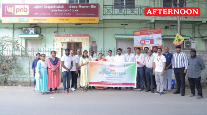 Punjab National Bank Coimbatore Circle Office organized a “Swachhata Hi Seva” cleanliness drive at Peelamedu Sri Gopal Naidu Higher Secondary School under the leadership of Circle Head and DGM Ms. K.Meera Bai. Chief Guest Mr.Karthikeyan, Managing Director of Adwaith Industries and School Secretary, along with School Administrative Officer Mr.Ravikumar, bank officers, and staff actively participated in the event.