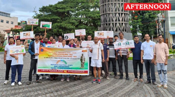 As part of Vigilance Awareness Week 2025, Punjab National Bank, Circle Office, Coimbatore, organized a Walkathon on today, flagged off by Circle Head Smt. Meera Bai to promote integrity and transparency in public life.