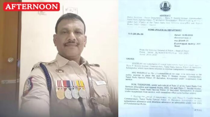 Police said Senthilkumar, who was serving as Commandant of the battalion in the rank of Superintendent of Police, had allegedly harassed women personnel working in the unit. Complaints were earlier lodged against him with higher authorities.