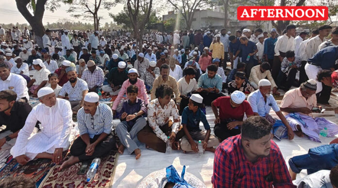 Wearing new clothes, devotees from 37 mosques across the town proceeded in groups to the prayer venue and participated in the mass prayer.