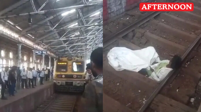 A major tragedy was averted at Chhatrapati Shivaji Maharaj Terminus in Mumbai after a man who had fallen asleep on a railway track narrowly escaped being run over by an approaching train.