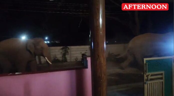 Two wild elephants enter residential area near Mettupalayam