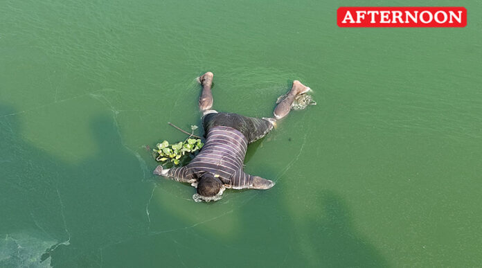 The body of an unidentified man was found floating in Valankulam near Ukkadam on Monday morning, creating tension in the locality and triggering an intensive police probe.