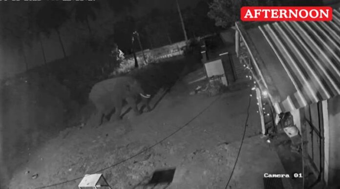 CCTV visuals also captured a man throwing a stone at the elephant as it approached a residential lane, showing the rising human–wildlife conflict in the area.